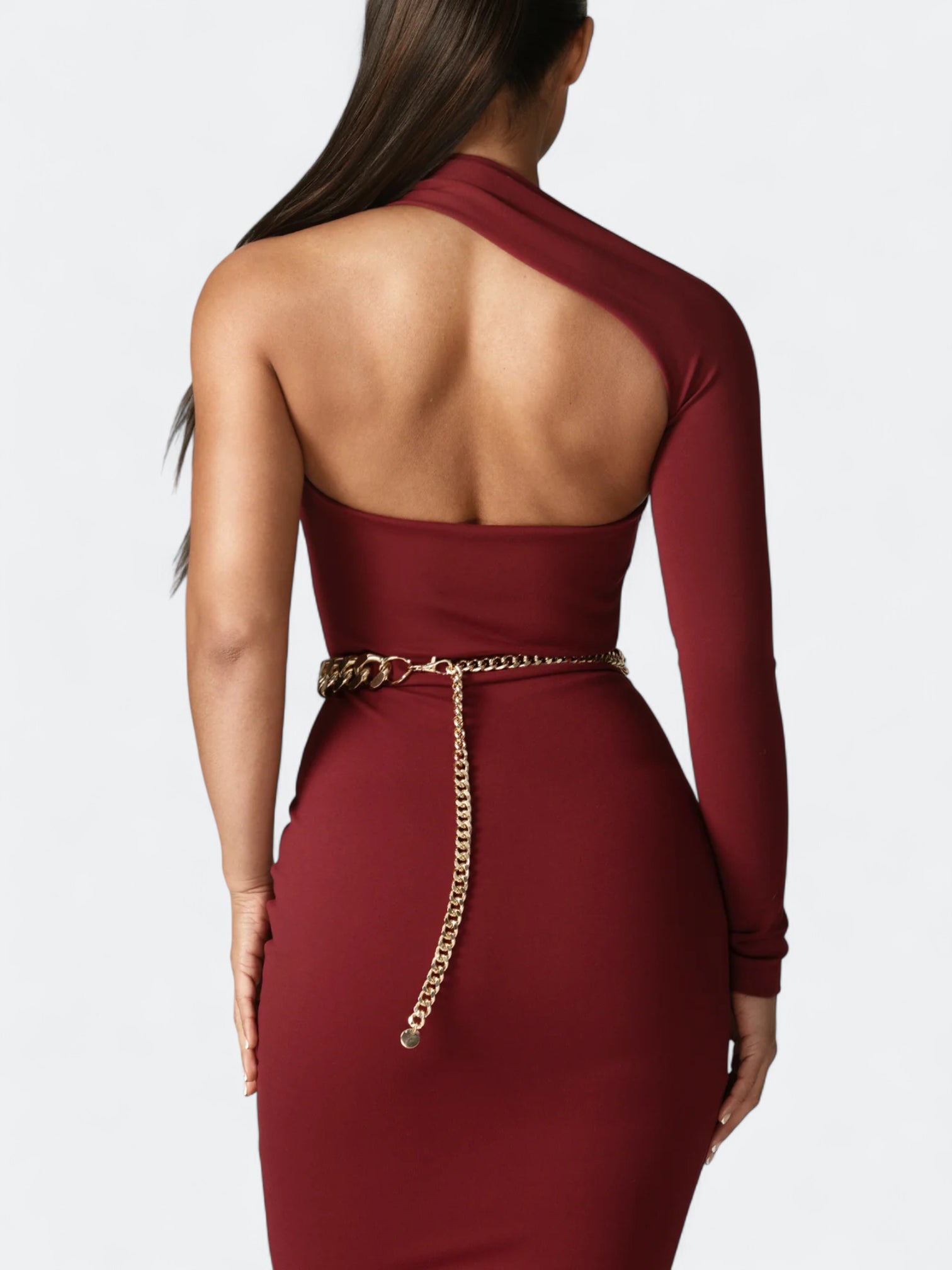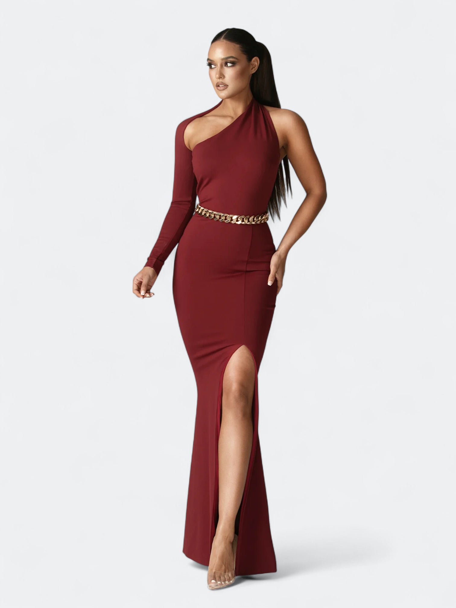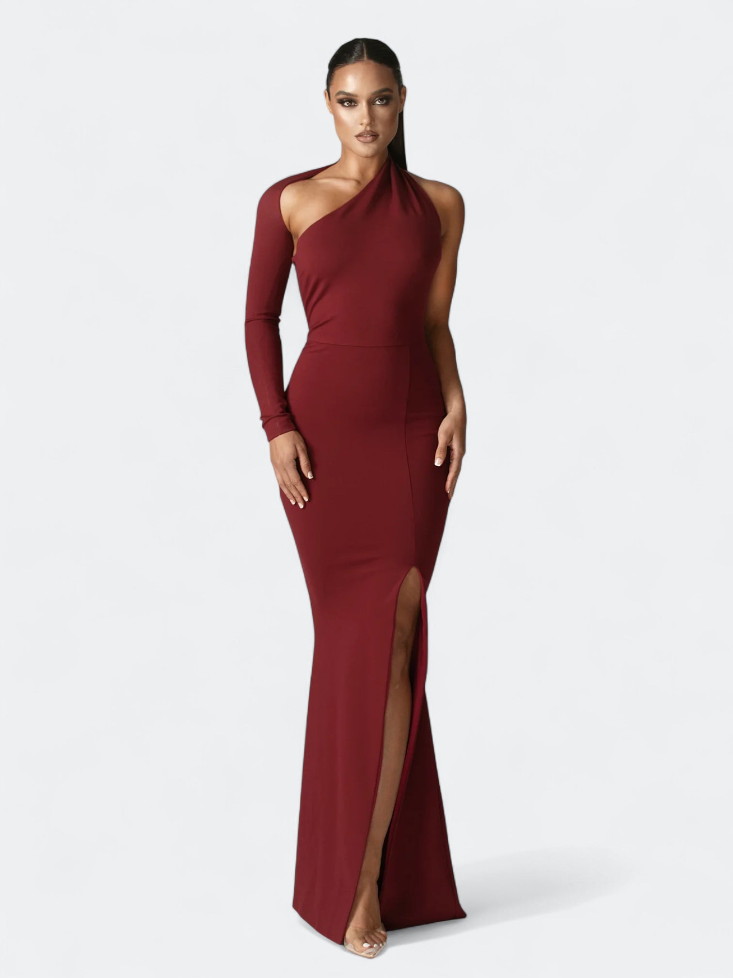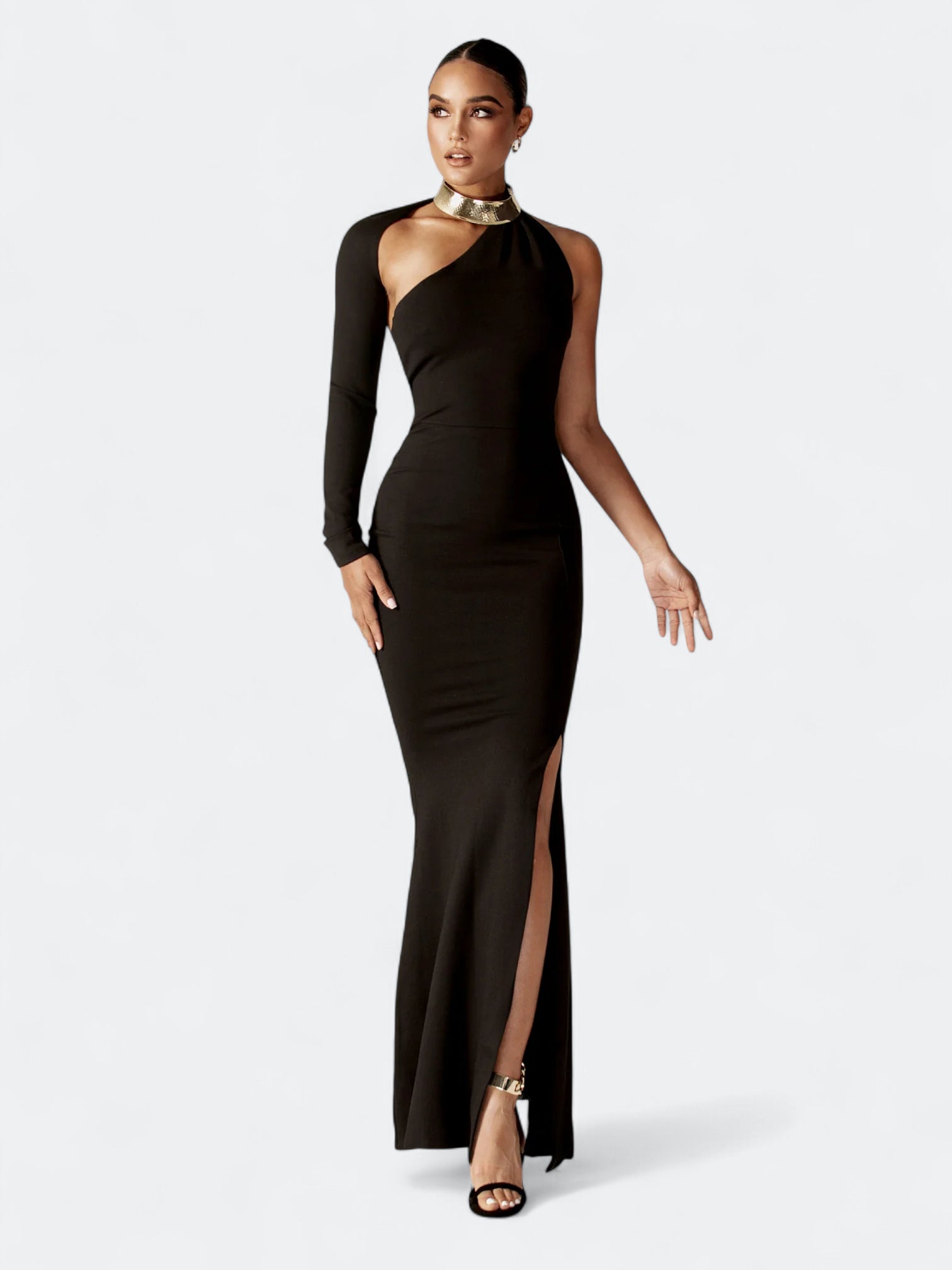 Lilux to efektowna kolumnowa sukienka, która łączy nowoczesną asymetrię z czystą linią. Jednoramienna góra przechodząca ukośnie przez szyję podkreśla ramiona i obojczyki, a gęsta, elastyczna dzianina ponte de roma gładko otula sylwetkę, modelując talię i biodra. Wysokie rozcięcie z boku wysmukla nogi i dodaje lekkości przy każdym kroku. Idealna na kolacje, koktajle i wieczorne wyjścia.