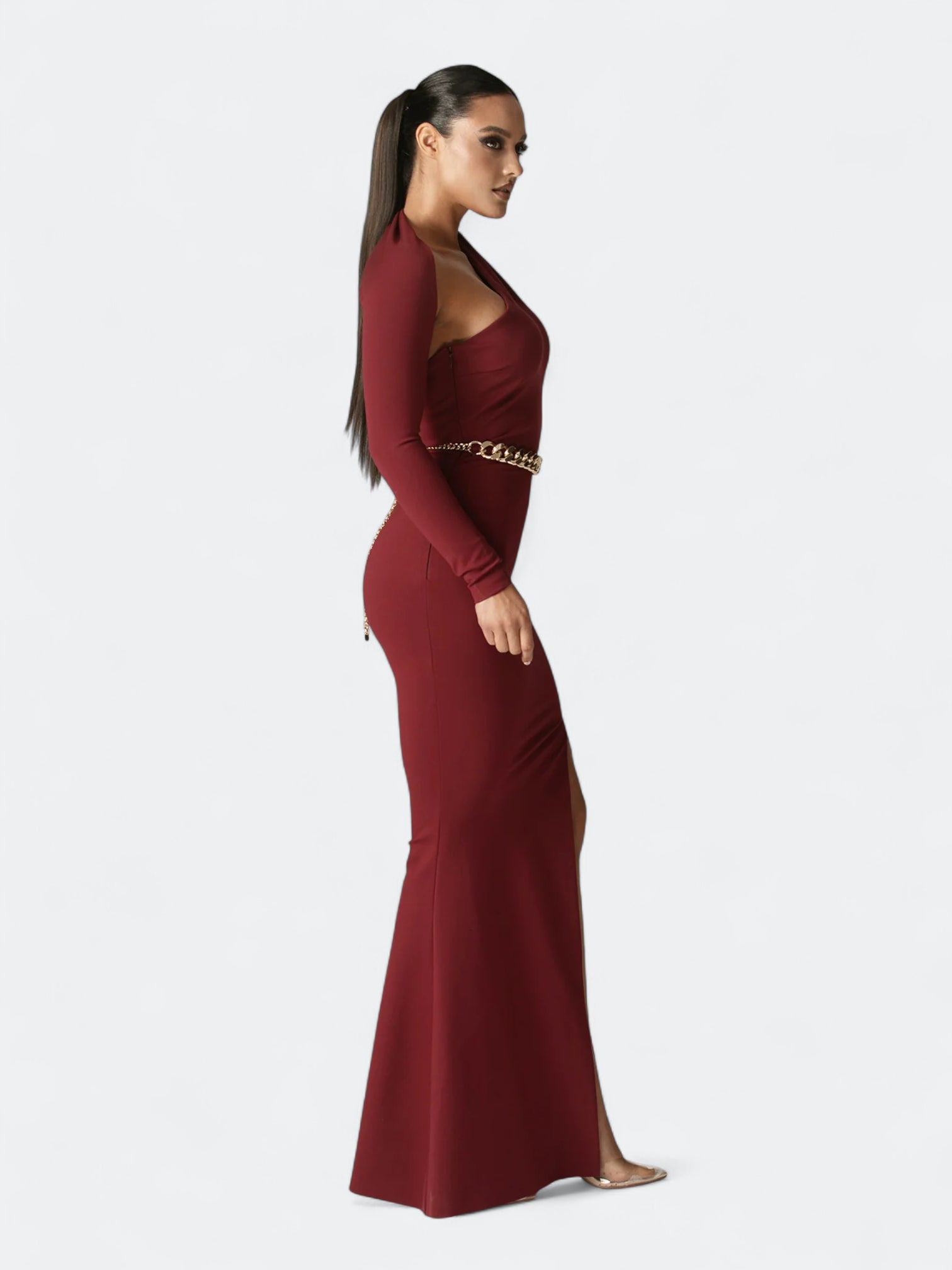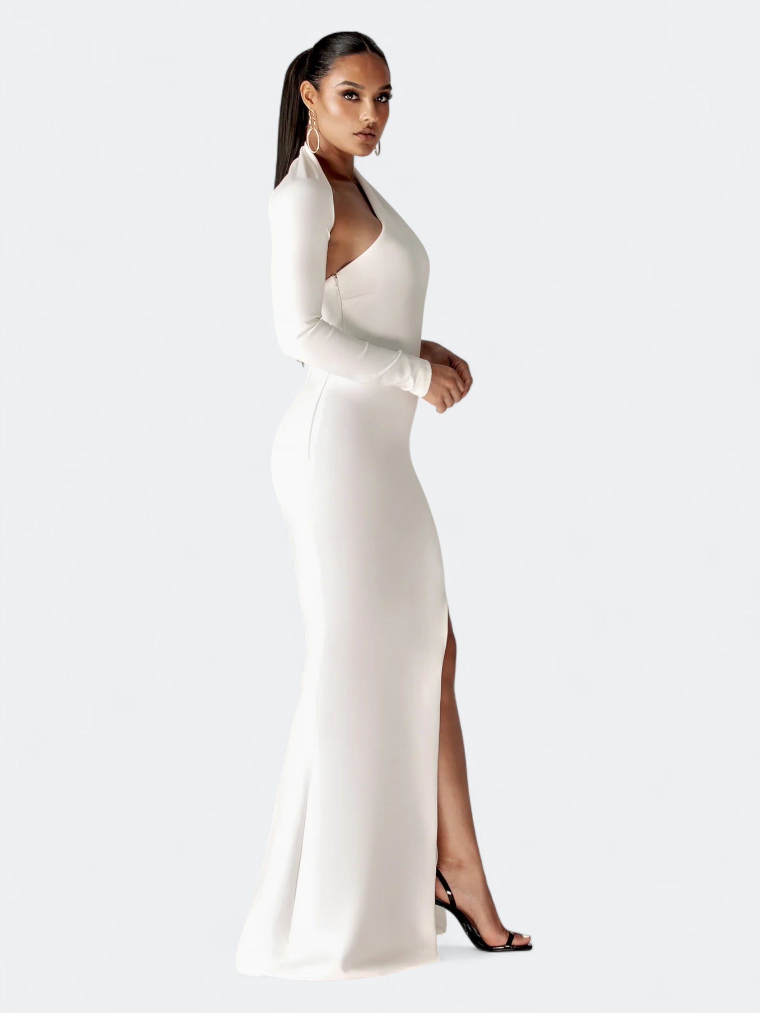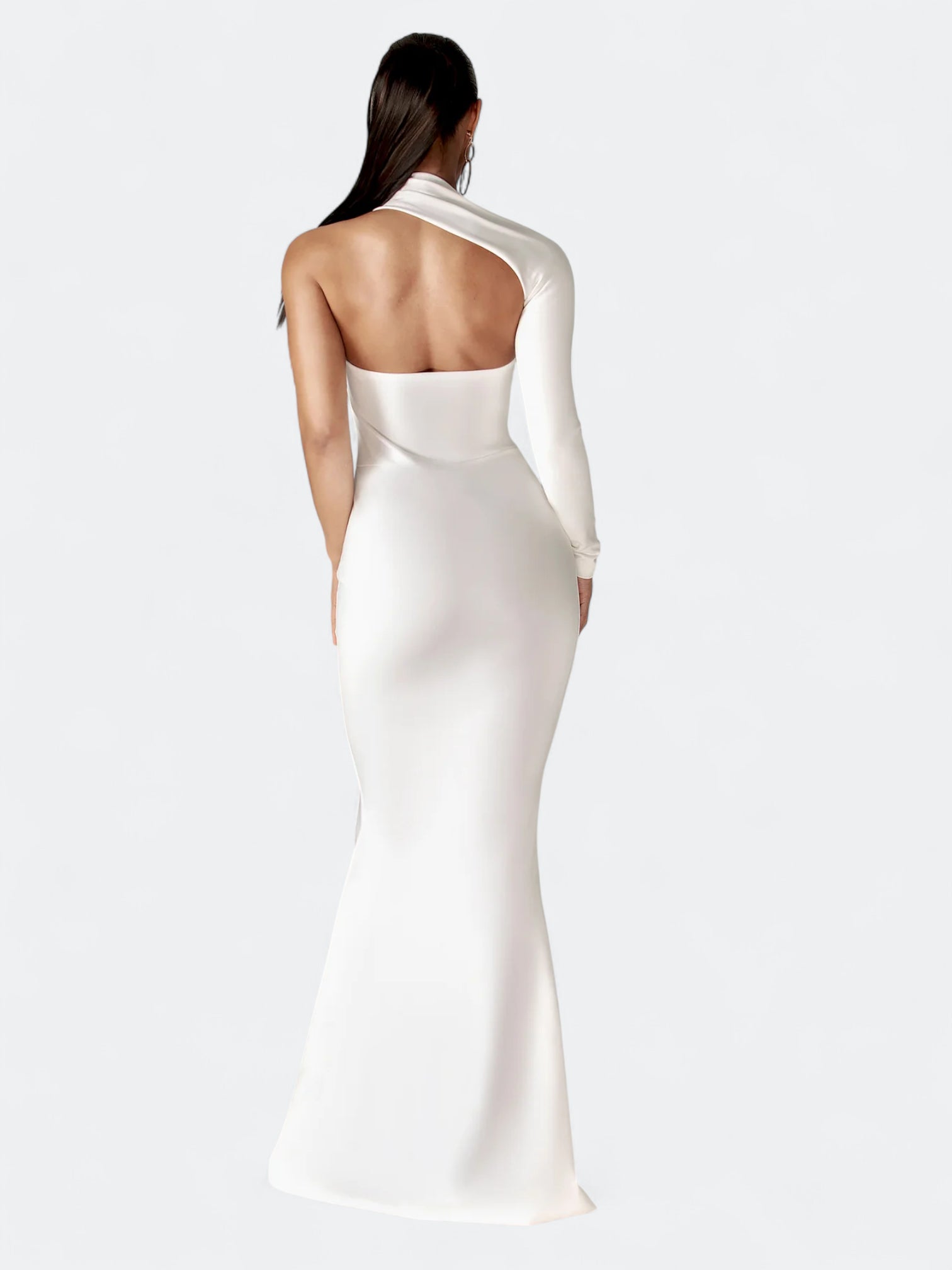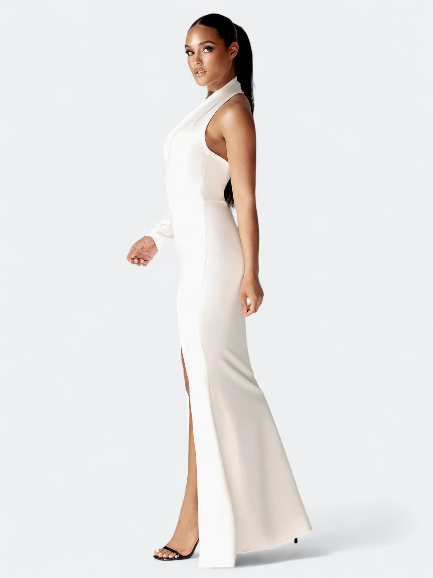 Lilux to efektowna kolumnowa sukienka, która łączy nowoczesną asymetrię z czystą linią. Jednoramienna góra przechodząca ukośnie przez szyję podkreśla ramiona i obojczyki, a gęsta, elastyczna dzianina ponte de roma gładko otula sylwetkę, modelując talię i biodra. Wysokie rozcięcie z boku wysmukla nogi i dodaje lekkości przy każdym kroku. Idealna na kolacje, koktajle i wieczorne wyjścia.