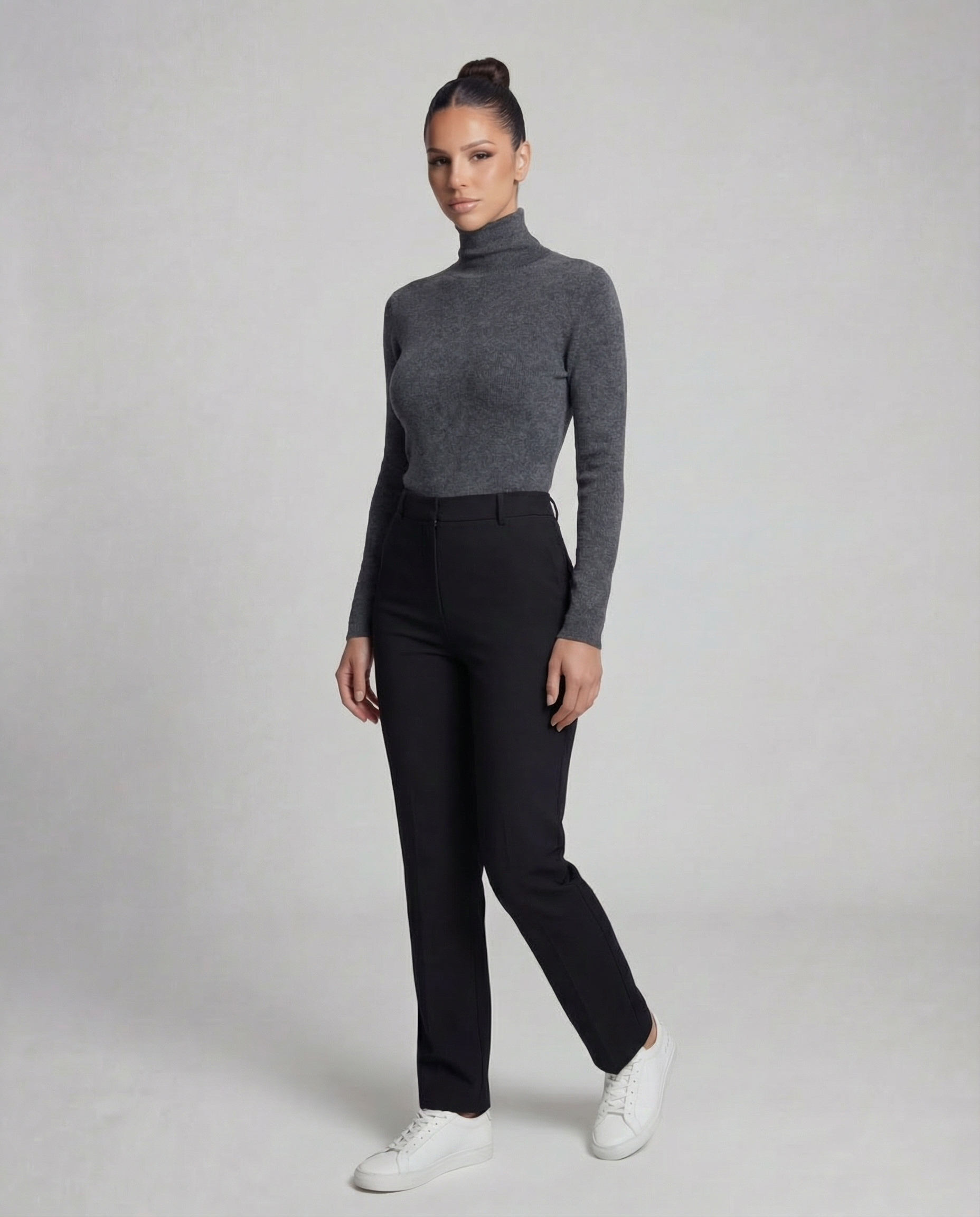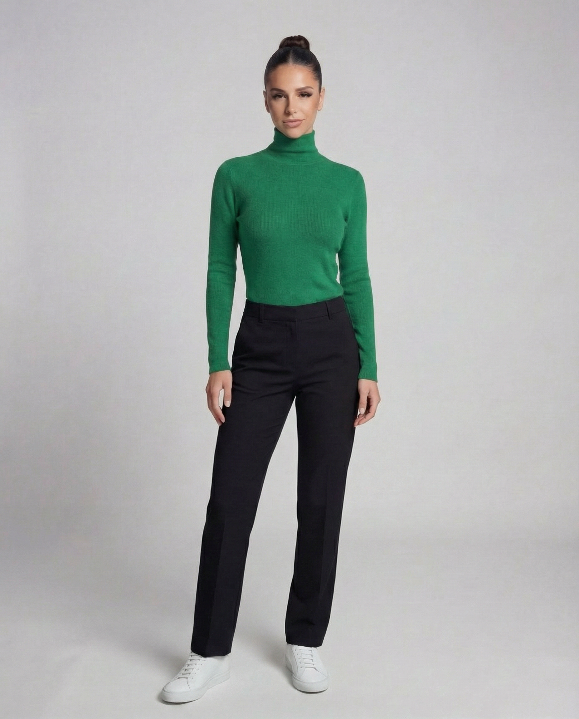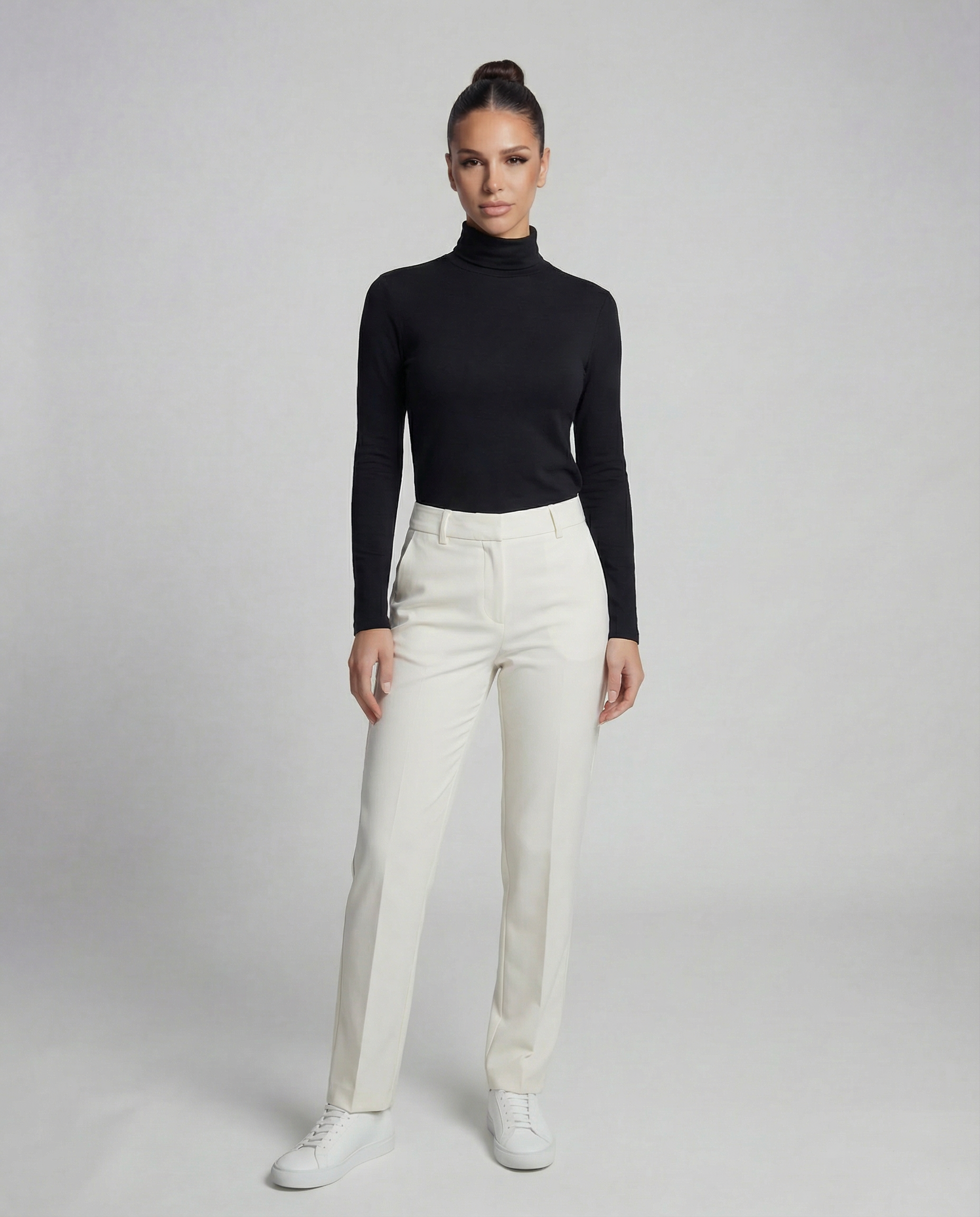 Minimalistyczny golf o gładkiej linii i subtelnym, dopracowanym wykończeniu. Cienka dzianina układa się blisko sylwetki i dobrze pracuje pod płaszczem oraz marynarką. To baza, która wygląda czysto i elegancko, bez zbędnych detali.