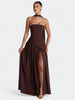 • Pełna, marszczona spódnica z rozcięciem do uda